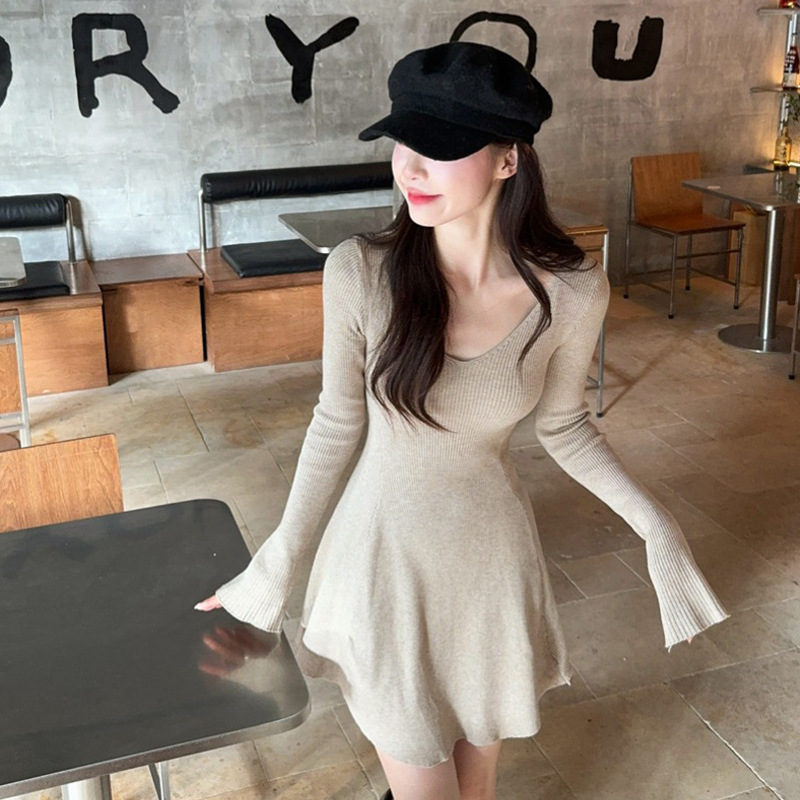 体のラインを美しく演出する縦リブ編みのニットワンピース。 伸縮性のある生地で快適な着心地を実現し、すっきりとしたミニ丈で脚長効果も期待できます。 シンプルながら洗練されたデザインで、上品な雰囲気を演出します。