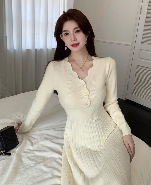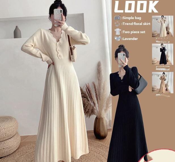 上品なプリーツデザインが美しいニットワンピース。 胸元のボタンがアクセントになった、女性らしいシルエットが魅力的。 柔らかなニット素材で着心地抜群、デイリーからお出かけまで幅広く活躍します。 エレガントなロング丈で大人の女性にぴったりの一着です。