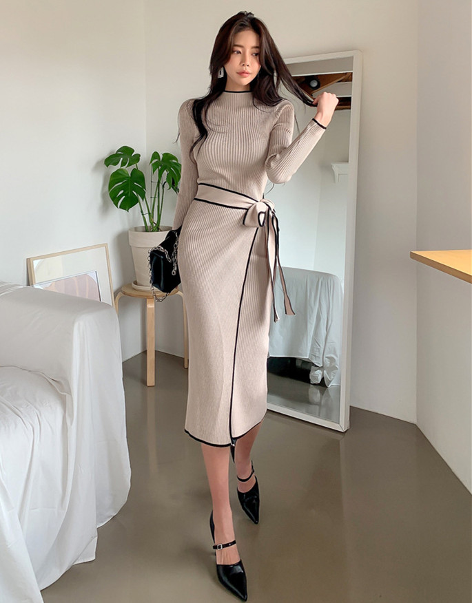上品なリブ編みが美しいニットワンピースです。 ウエストベルトでスタイルアップ効果抜群で、通勤通学にも最適。 秋冬シーズンにぴったりの着回し力の高い一着で、大人の女性らしさを演出します。