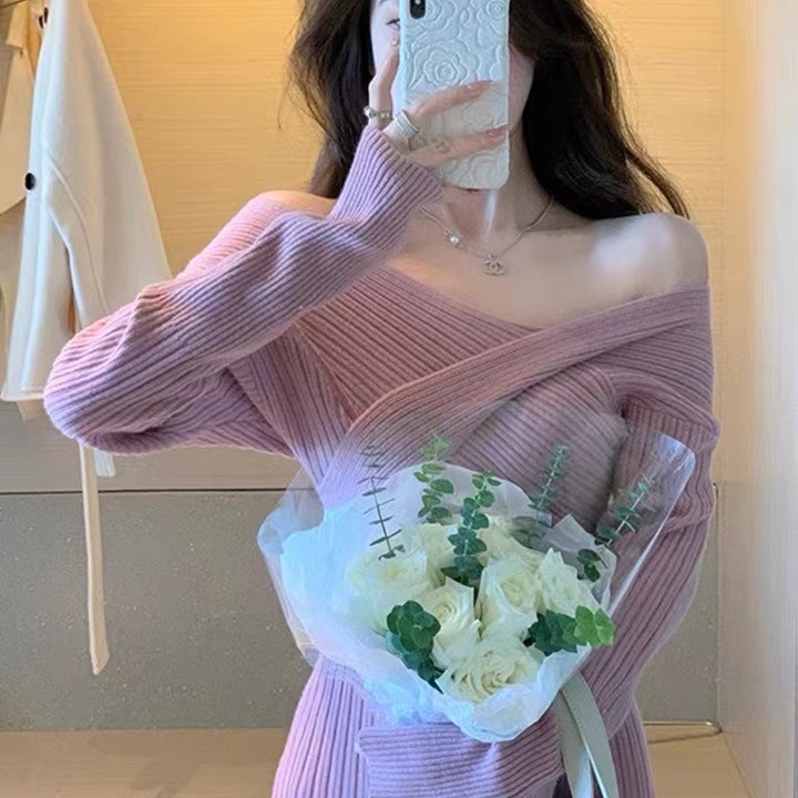 上品なオフショルダーデザインが魅力的なニットワンピースです。 リブ編みの美しいシルエットが女性らしさを演出し、デイリーからお出かけまで幅広く活躍します。 柔らかな素材で着心地も抜群、秋冬のワードローブに欠かせない一枚です。