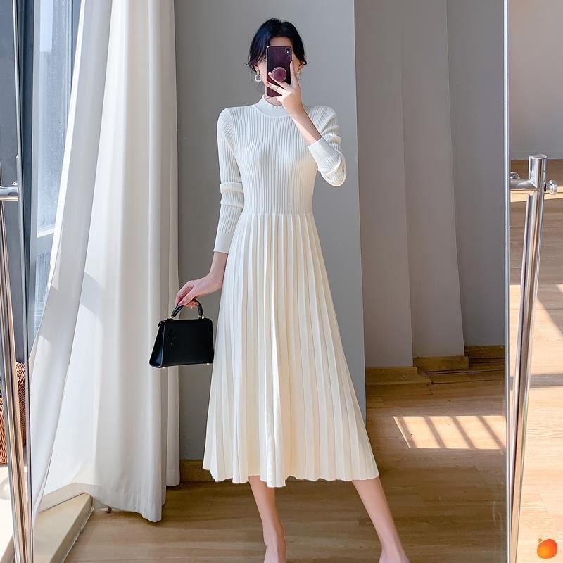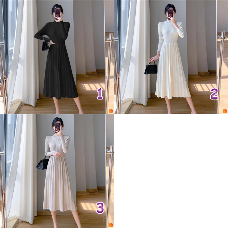 エレガントなリブ編みが美しいニットワンピースです。 長袖デザインでオールシーズン活躍し、プリーツスカートが上品な印象を演出します。 3色展開で様々なシーンに合わせやすく、一枚で完成する万能アイテムです。
